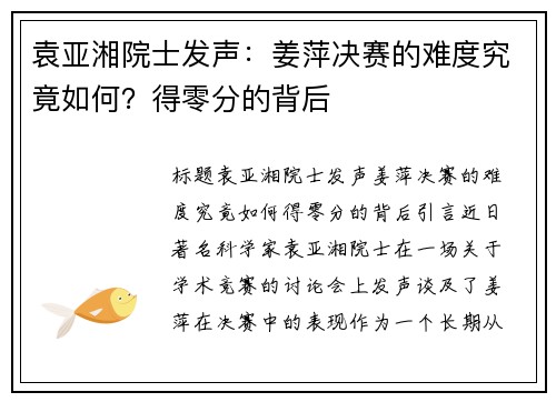 本篇文章将围绕雄鹿队主场迎战雷霆一役展开,重点分析字母哥与锡安的对决。文章将从四个方面进行详细阐述:字母哥的个人表现及影响力、锡安的对抗与表现、两队的整体战术布局、以及比赛的关键时刻和胜负走向。通过这些角度的分析,本文将全面展现这场对决的精彩与紧张氛围,并结合球队的战术特点与球员的个人能力,为读者呈现一场不可错过的篮球盛宴。 1、字母哥的个人表现及影响力 字母哥,作为雄鹿队的核心球员,他的表现是球...